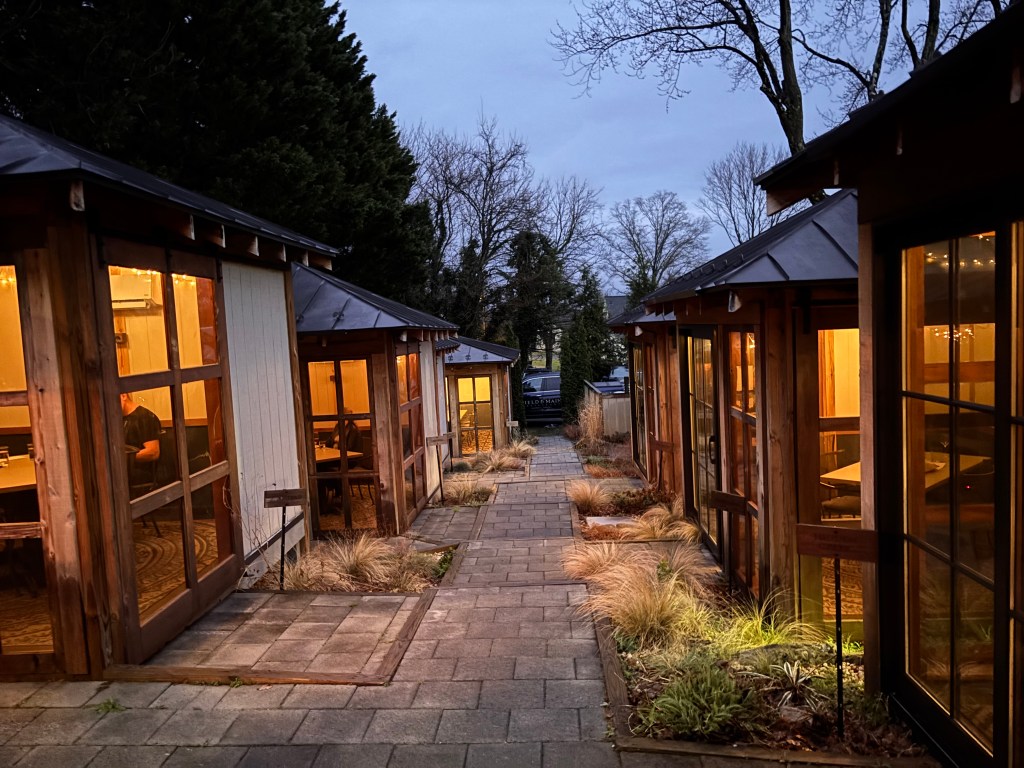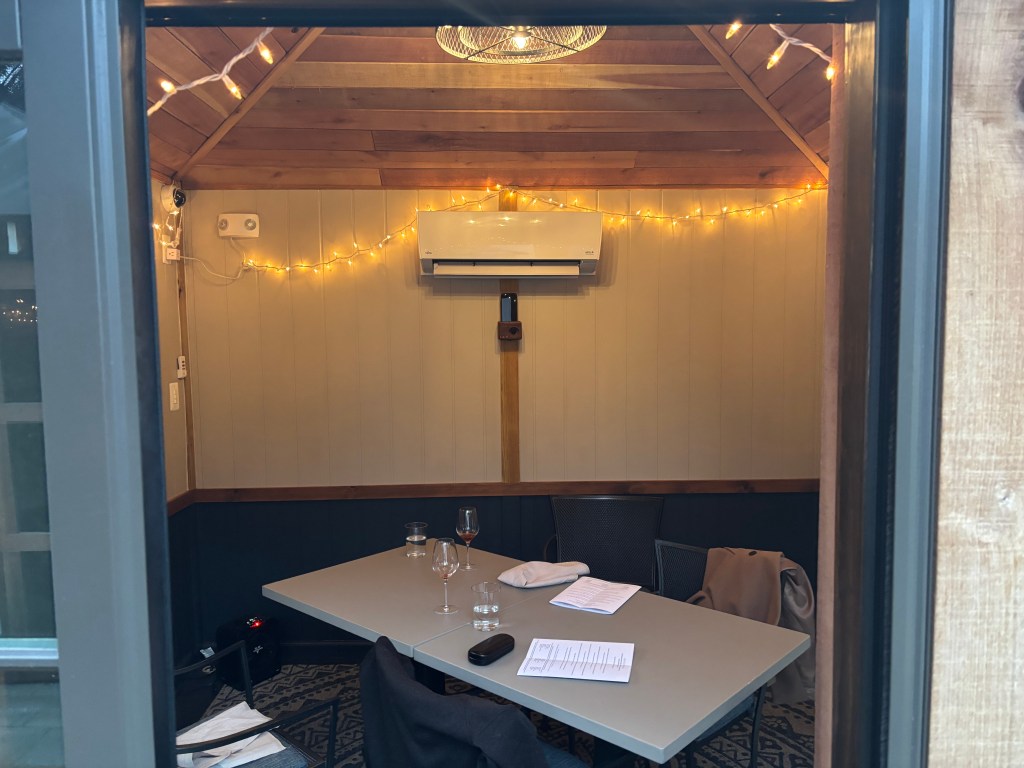 Before I get to the food and wine, a quick note on the ambiance. When we made our reservation, we chose one of Field and Main’s private cabanas, without knowing fully what to expect. As it was going to be on the cooler side, we were a bit concerned on whether we would be warm enough. We had no need to worry. The private cabana was incredibly quaint and at the perfect temperature (it has both heat and air conditioning and so can be used year-round). Additionally, it had a neat natural amplifier in which you could place your phone so that you can listen to music of your choice while enjoying your meal. I feel like the cabana added a lot to our enjoyment of our dining experience. On to the food and the wine.
